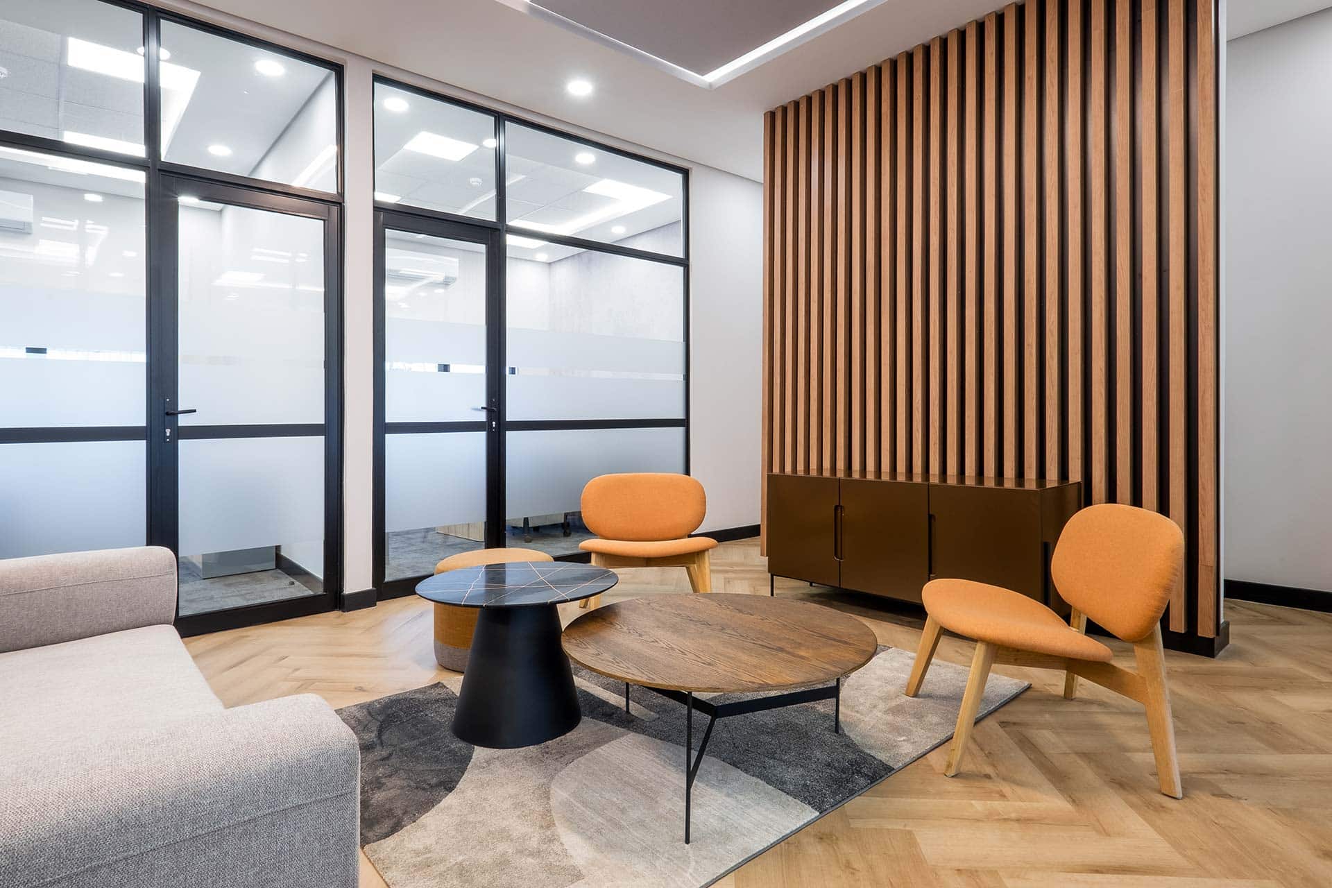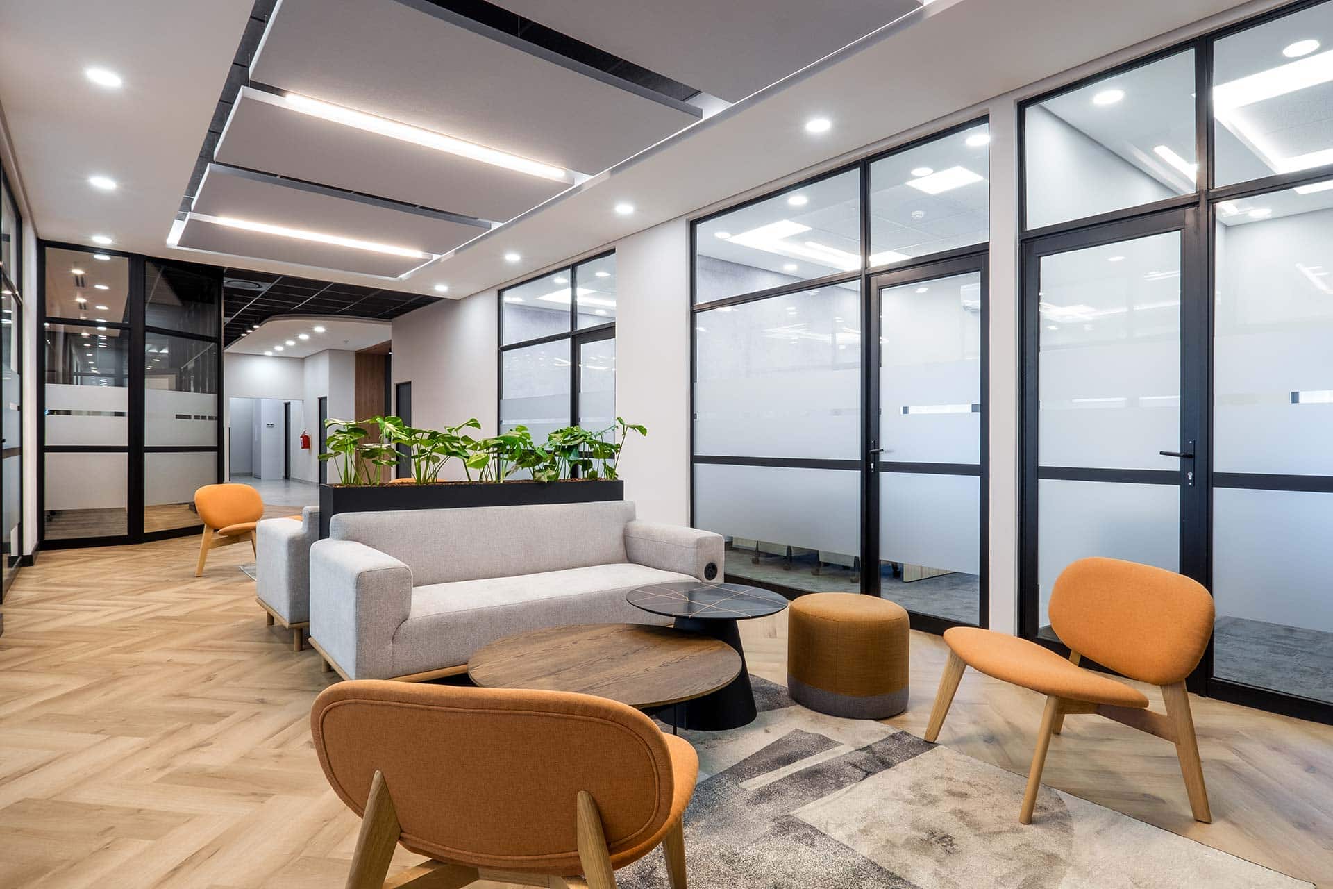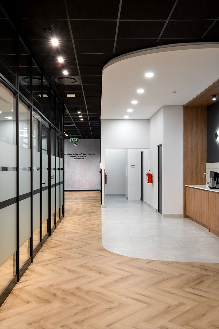 From subtle automotive-inspired accents to the seamless integration of lab spaces, every element of this project was designed with purpose. Locally made desking grounded the project in South African craftsmanship, while high-end ergonomic chairs were imported to meet the client’s exacting standards for comfort and quality.